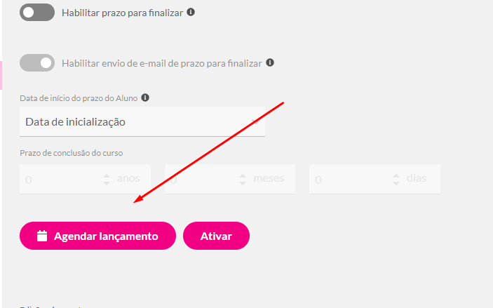 - Na aba de configurações, selecione a opção “Agendar Lançamento”, que fica no final da página.