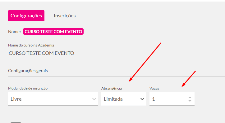 A limitação de vagas se aplica apenas a cursos com modalidade de inscrição Livre. Em cursos de modalidade Restrita, o controle de matrículas já é feito manualmente pelo administrador, que pode inscrever quantos alunos desejar.