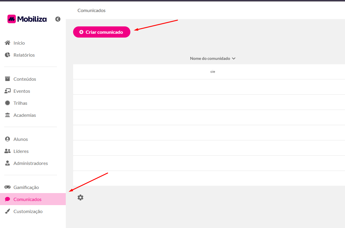 Os Comunicados Customizados são uma ferramenta de comunicação do Mobiliza LMS para enviar mensagens direcionadas aos seus alunos por meio de diferentes canais. Com eles, você pode criar anúncios, convites ou lembretes e segmentar o público que receberá a mensagem, garantindo que a comunicação seja sempre relevante.