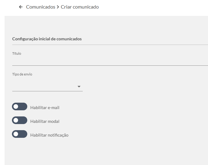 - Enviar: Dispara o comunicado para o público selecionado imediatamente.