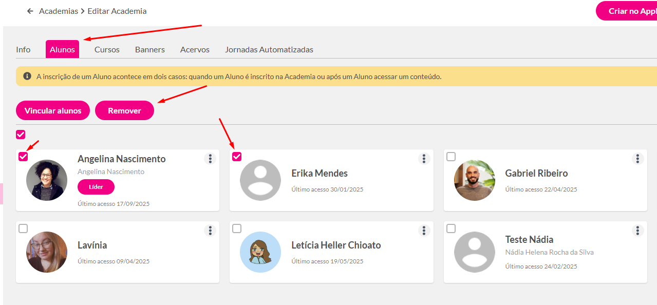 Como desvincular (remover) alunos de uma Academia