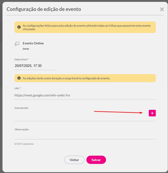Vincular um instrutor a uma edição é fundamental para a organização e para permitir que ele possa gerenciar a lista de presença.
