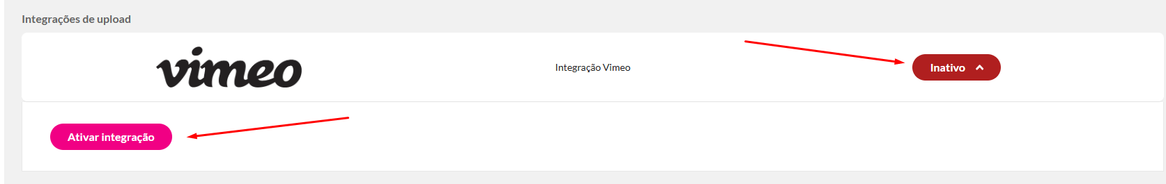 - Clique no botão ao lado do logo do Vimeo, que estará como “Inativo”.