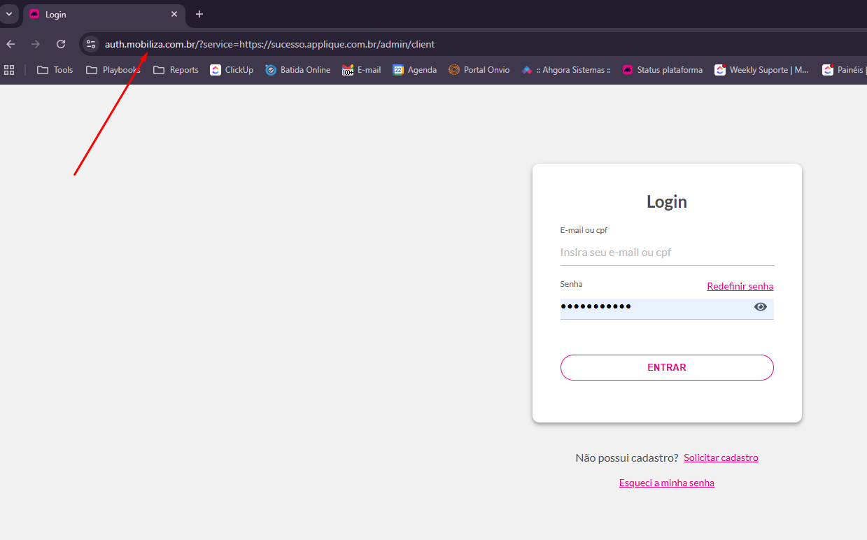 Se não tiver certeza da senha, clique em “Esqueci minha senha” na tela de login para iniciar o processo de redefinição. - Verifique o endereço da empresa (Link da Instância)