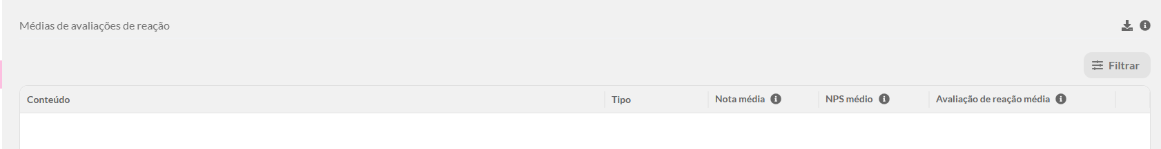 - Role a página até a seção “Médias de avaliação de reação (NPS)”.