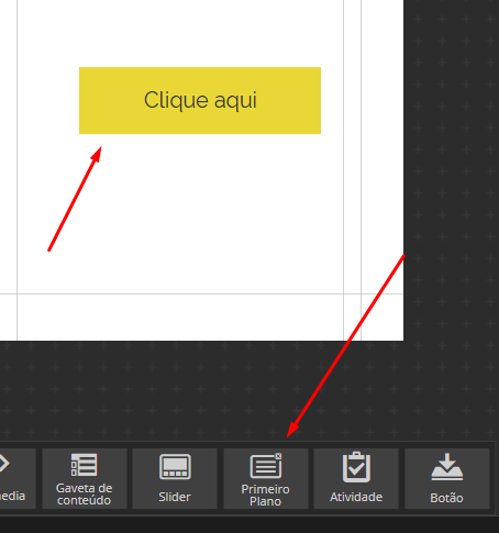 - Na barra de ferramentas inferior do editor, clique no ícone Primeiro Plano. Um botão padrão será adicionado ao seu slide.