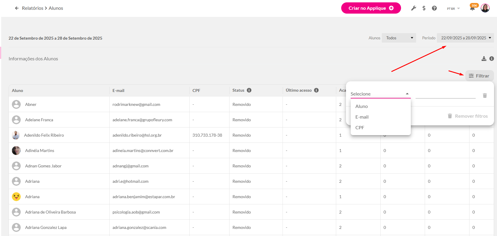 Como usar o Relatório de Alunos