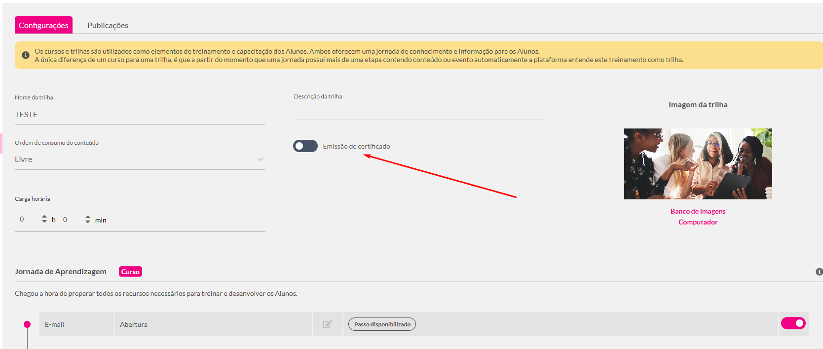 Como vincular um certificado a uma Trilha de Aprendizagem